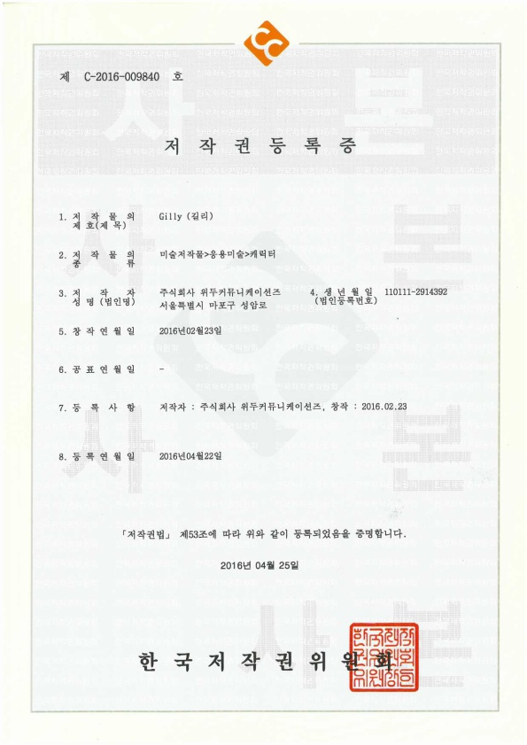 [한국/저작권] 길리 페이지 정보 작성자 WeDu 댓글 0건 조회 5,020회 작성일 19-05-30 19:07 본문 2016-04-22 저작권 C-2016-009840 길리 / 미술저작물>응용미술>캐릭터 List Previous[한국/저작권] 나무트 19.05.30 Next[한국/저작권] 리안의 수학 모험 19.05.30